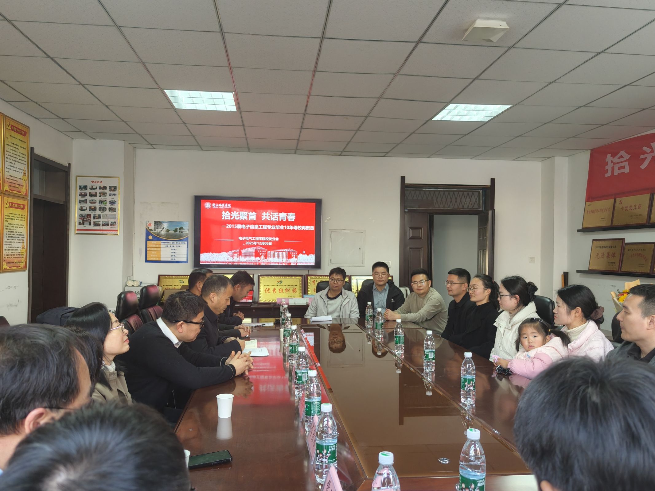 12月6日,2015届电子信息工程专业的校友会跨越山海,从全国各地返回母校,奔赴一场 “拾光聚首 共话青春” 的温情之约。赵纲领、孟学超、朱震杰、李彦敏等多位当年授课指导教师莅临现场,与校友们欢聚一堂,共忆往昔、共叙情谊。活动由学院党委副书记蒋玉涛主持。