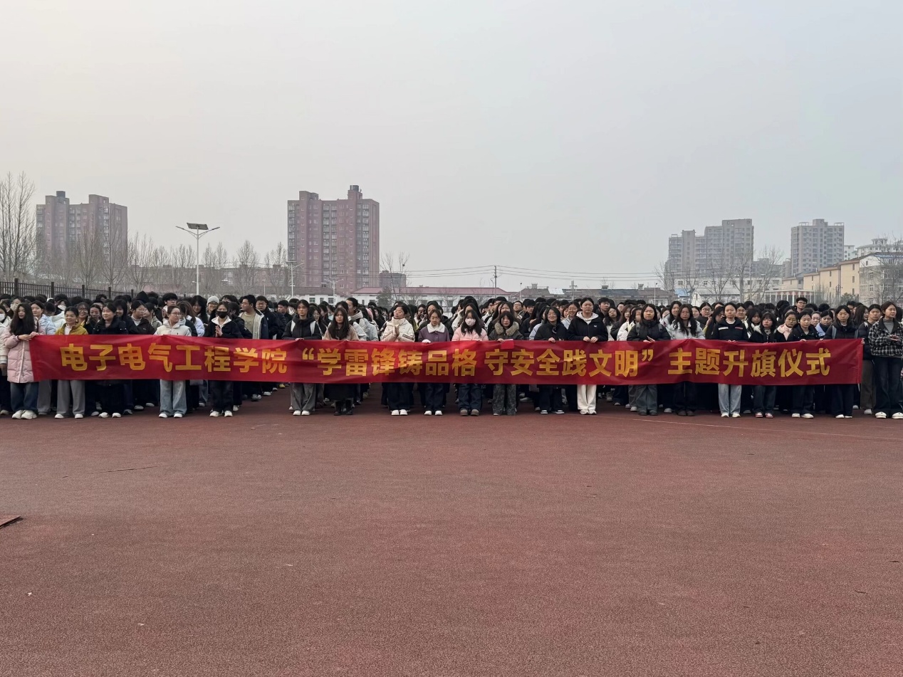 3月9日,我院在睢阳校区举行“学雷锋铸品格,守安全践文明”主题升旗仪式。院长赵纲领、党委副书记蒋玉涛、副院长杨同辉出席仪式,全体辅导员老师及2025级全体学生参加仪式。