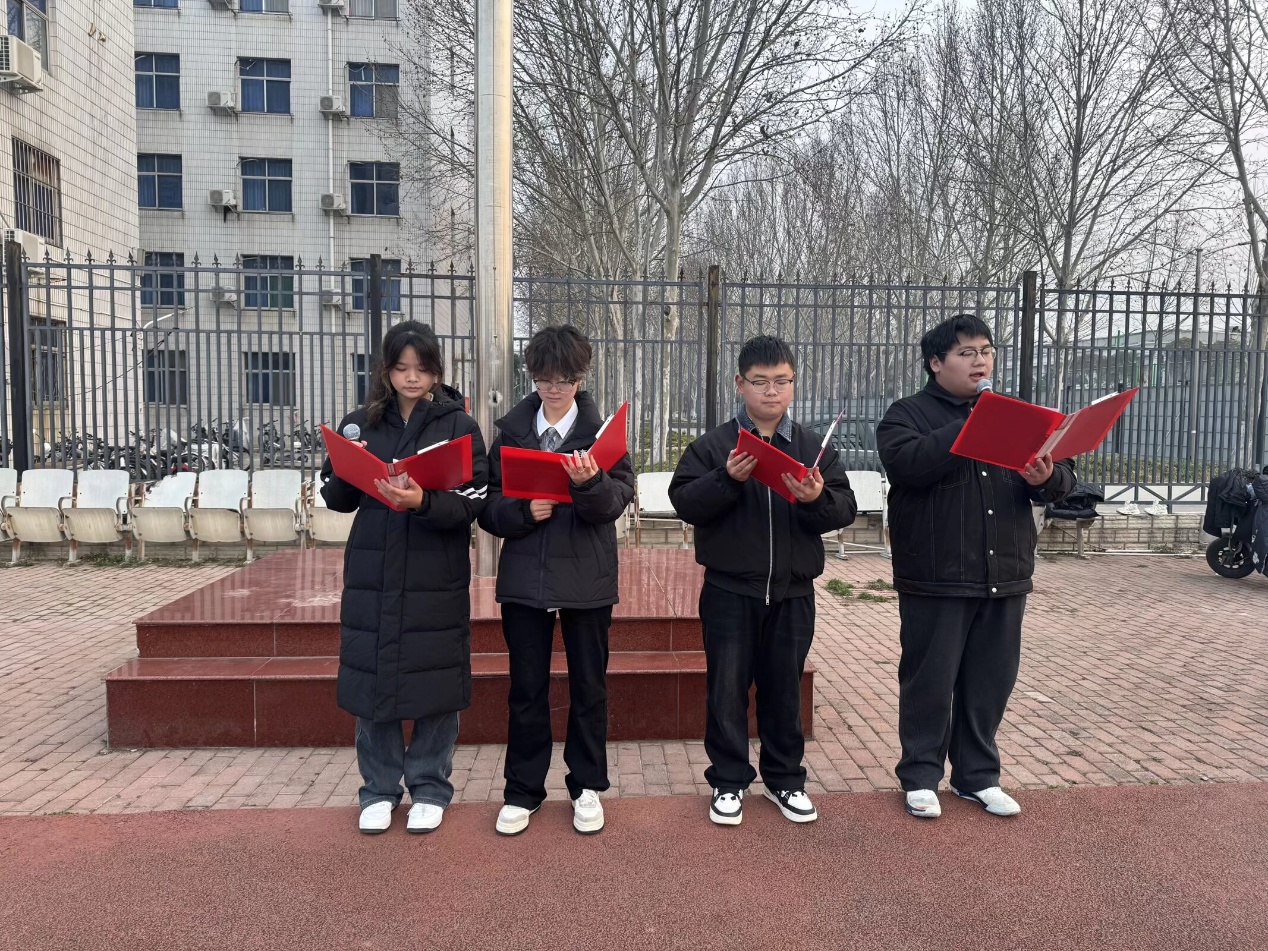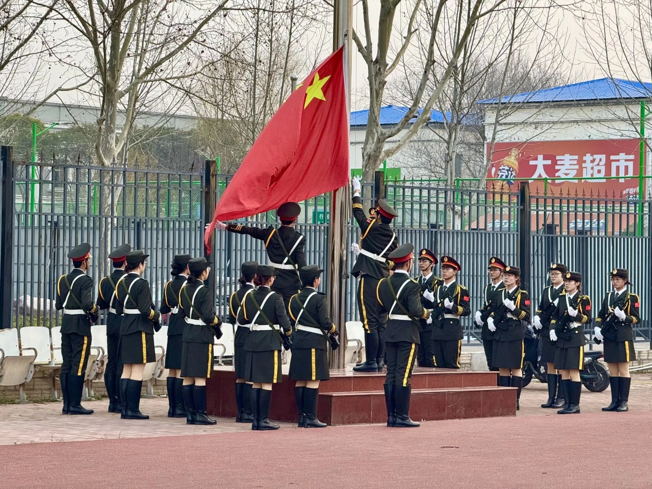 伴随着铿锵激昂的《义勇军进行曲》,五星红旗徐徐升起,全体师生行注目礼、高唱国歌,现场庄严肃穆,浓厚的爱国情怀与昂扬的青春朝气充盈着仪式现场。